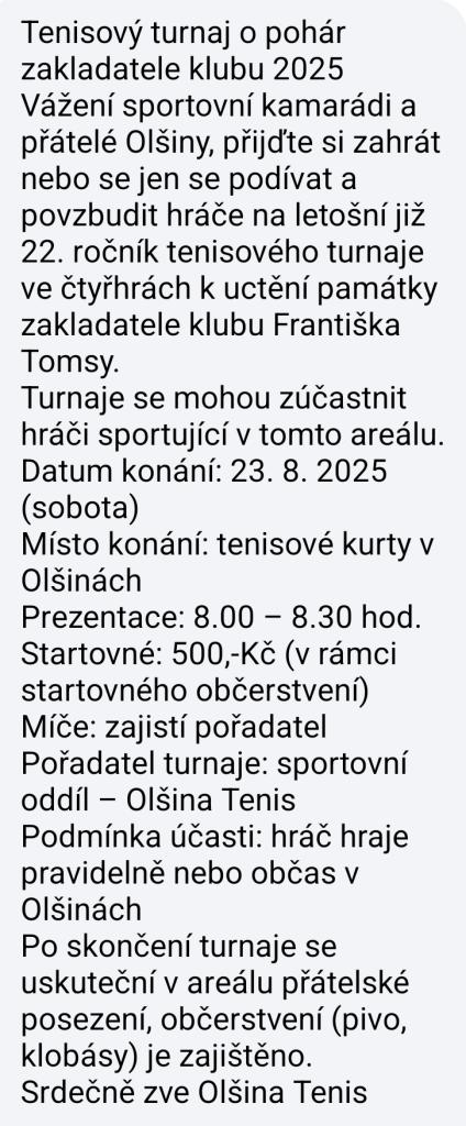 Tenisový turnaj o pohár zakladatele klubu 2025